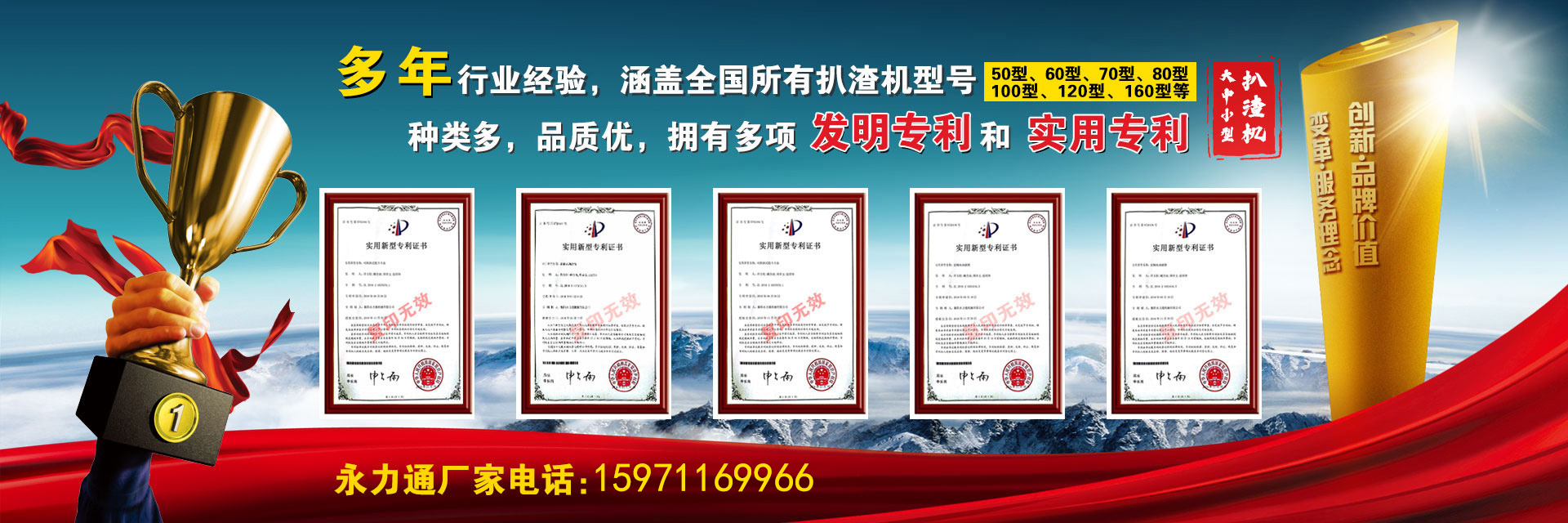 襄陽永力通機械有限公司 簡稱(永力通)是專業生產定做扒渣機的廠家,10位專業的扒渣機結構構造師,在一線工作10年以上的車間工程師100名(鉗工、焊工、切割工、車工、電工和輔助機械員)。目前永力通可年生產1000臺扒渣機。